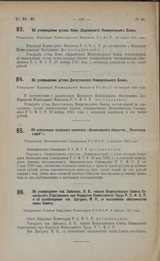 Собрание узаконений и распоряжений Рабоче-Крестьянского правительства РСФСР за 1927 г. № 1-40. Отдел второй. — М., Б. г.