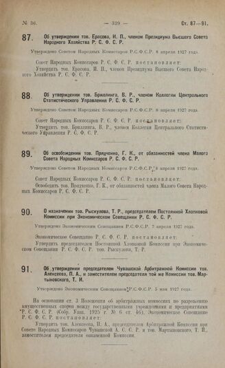 Главная Собрание законов и распоряжений правительства РСФСР и СССР Собрание законов и распоряжений Рабоче-Крестьянского Правительства ... Собрание узаконений и распоряжений Рабочего и Крестьянского правите... Собрание узаконений и распоряжений Рабоче-Крестьянского правительст... Документы Об утверждении тов. Ерасова, И.П., членом Президиума Высшего Совета...