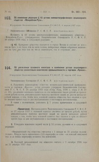 Главная Собрание законов и распоряжений правительства РСФСР и СССР Собрание законов и распоряжений Рабоче-Крестьянского Правительства ... Собрание узаконений и распоряжений Рабочего и Крестьянского правите... Собрание узаконений и распоряжений Рабоче-Крестьянского правительст... Документы Об увеличении основного капитала и изменении устава акционерного об...