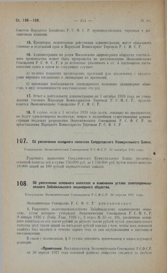 Об увеличении основного капитала Свердловского Коммунального Банка. Утверждено Экономическим Совещанием РСФСР 22 октября 1925 г.