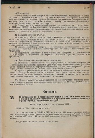 О дополнении ст. 1 постановления ВЦИК и СНК от 8 июля 1929 года о порядке взыскания невнесенных в срок платежей по некоторым категориям местных неналоговых доходов. Пост. ВЦИК и СНК от 15 января 1930 г.