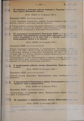 Об отнесении к категории рабочих поселков с. Городищи Орехово-зуевского округа Московской области. Пост. ВЦИК от 28 февраля 1930 г.