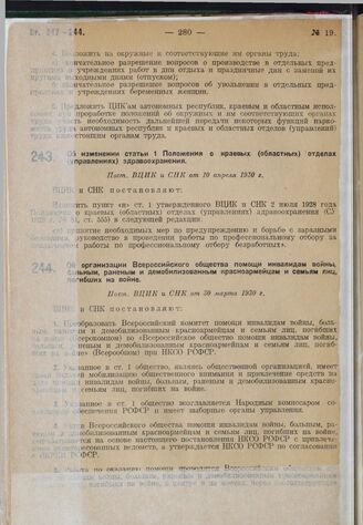 Об изменении статьи 1 Положения о краевых (областных) отделах (управлениях) здравоохранения. Пост. ВЦИК и СНК от 10 апреля 1930 г.