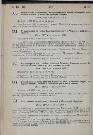 О включении в черту рабочего поселка Бытошь, Брянского округа, Западной области, некоторых примыкающих к нему селений. Пост. ВЦИК от 20 апреля 1930 г.