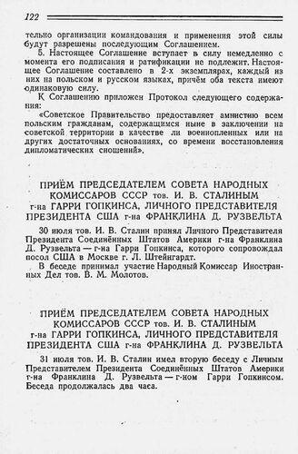 Прием Председателем Совета Народных Комиссаров СССР тов. И. В. Сталиным г-на Гарри Гопкинса, Личного Представителя Президента США г-на Франклина Д. Рузвельта. 30 июля 1941 года