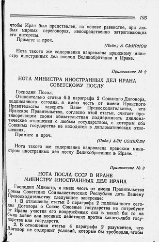 Приложение № 3 к Договору о союзе между Союзом Советских Социалистических Республик, Великобританией и Ираном от 30 января 1942 года. Нота Посла СССР в Иране Министру Иностранных Дел Ирана