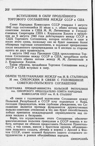 Обмен телеграммами между тов. И. В. Сталиным и ген. Сикорским в связи с годовщиной Советско-Польского Соглашения. 7 августа 1942 года