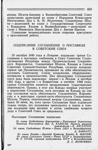 Подписание Соглашения о поставках в Советский Союз. 10 октября 1943...