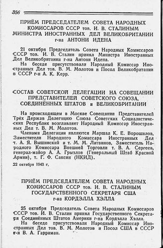 Состав Советской делегации на Совещании представителей Советского Союза, Соединенных Штатов и Великобритании. 22 октября 1943 года
