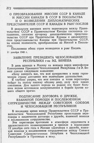 О преобразовании Миссии СССР в Канаде и Миссии Канады в СССР в Посольства и о возведении дипломатических представителей СССР и Канады в ранг Послов. 11 декабря 1943 года