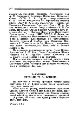 Заявление Президента Эд. Бенеша. 17 марта 1945 года
