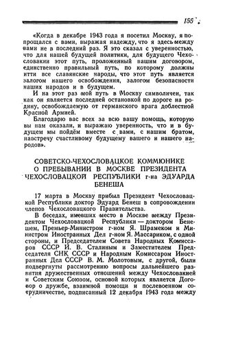 Советско-Чехословацкое коммюнике о пребывании в Москве Президента Чехословацкой Республики г-на Эдуарда Бенеша. 1 апреля 1945 года