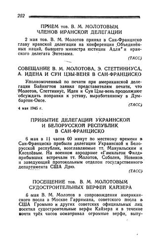 Совещание В. М. Молотова, Э. Стеттиниуса, А. Идена и Сун Цзы-веня в Сан-Франциско. 4 мая 1945 года