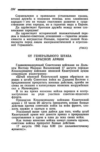 От Генерального Штаба Красной Армии. 17 августа 1945 года