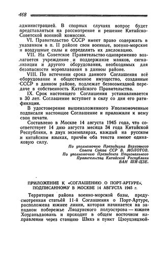 Приложение к «Соглашению о Порт-Артуре», подписанному в Москве 14 августа 1945 года. 14 августа 1945 года