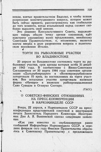 О советско-финских отношениях на пресс-конференции в Наркоминделе СССР. 22 апреля 1944 г.