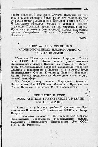 Внешняя политика Советского Союза в период Отечественной войны. Т. 2. 1 января — 31 декабря 1944 г.: Док. и материалы. — М.: Госполитиздат, 1946.