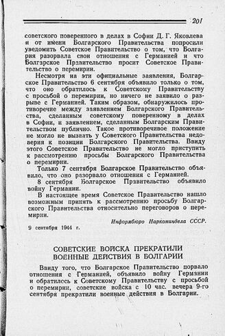 Советские войска прекратили военные действия в Болгарии. 9 сентября 1944 г.