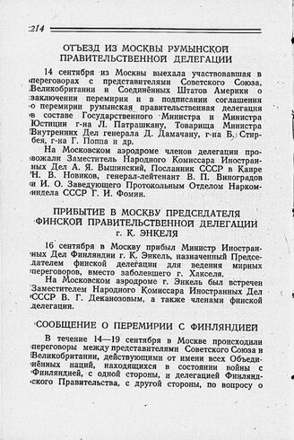 Сообщение о перемирии с Финляндией. 19 сентября 1944 г.