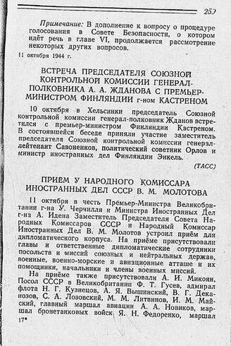 Прием у Народного Комиссара Иностранных Дел СССР В. М. Молотова. 11 октября 1944 г.