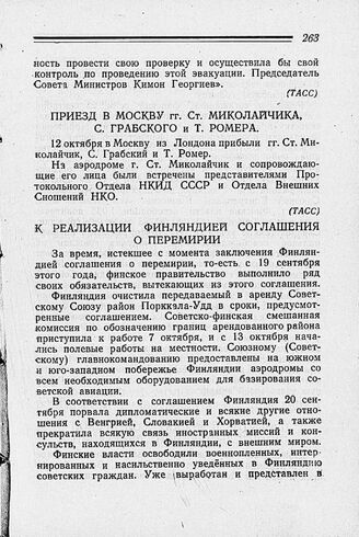 К реализации Финляндией соглашения о перемирии. 15 октября 1944 г.