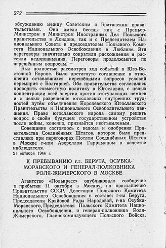 К пребыванию г.г. Берута, Осубка-Моравского и генерал-полковника Роля-Жимерского в Москве. 21 октября 1944 г.