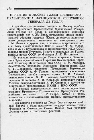 Прибытие в Москву Главы Временного Правительства Французской Республики генерала де Голля. 2 декабря 1944 г.