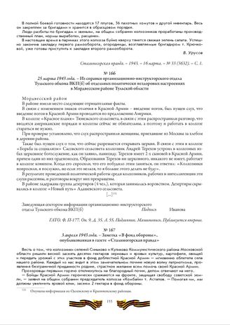 25 марта 1943 года. - Из справки организационно-инструкторского отдела Тульского обкома ВКП(б) об отдельных политически нездоровых настроениях в Мордвесском районе Тульской области