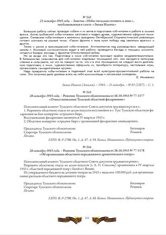 Тульский край в Великой Отечественной войне 1941-1945 гг. Т. 2. 1943 год: Сб. док. и материалов. — Тула: Тульский полиграфист, 2013.