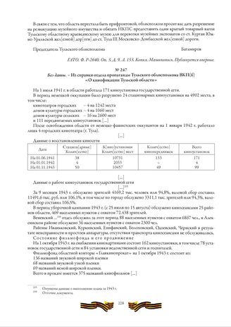 Без даты. - Из справки отдела пропаганды Тульского облисполкома ВКП(б) «О кинофикации Тульской области» // ГАТО. Ф.П-177. Оп. 9. Д. 101. Л. 9-10. Копия. Машинопись. Публикуется впервые.