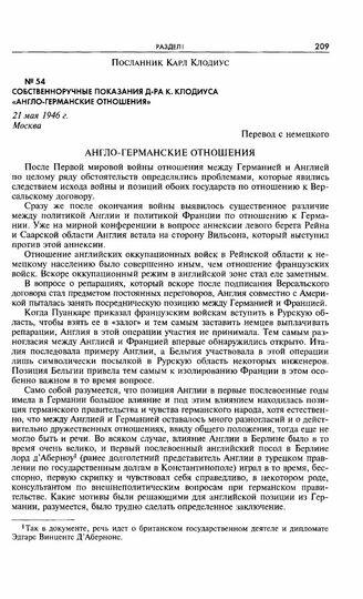 Собственноручные показания д-ра К. Клодиуса «Англо-германские отношения». 21 мая 1946 г. Москва