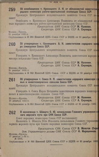 Известия ЦИК Союза ССР и ВЦИК от 22 декабря 1932 г., № 352.