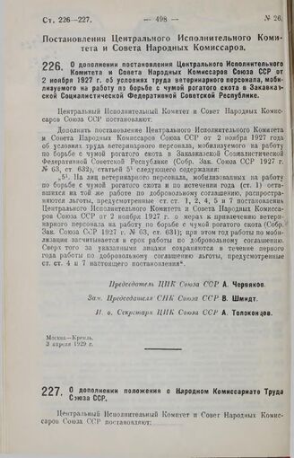 Собрание законов и распоряжений Рабоче-Крестьянского Правительства СССР за 1929 г. № 1-39. Отдел первый. — М., б. г.