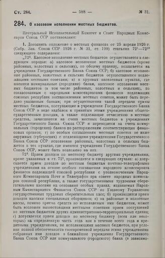 Постановление Центрального Исполнительного Комитета и Совета Народных Комиссаров. О кассовом исполнении местных бюджетов. 24 апреля 1929 г.