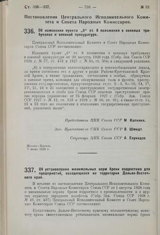 Постановление Центрального Исполнительного Комитета и Совета Народных Комиссаров. Об изменении пункта „б“ ст. 8 положения о военных трибуналах и военной прокуратуре. 7 июня 1929 г.