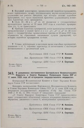 Постановление Центрального Исполнительного Комитета и Совета Народных Комиссаров. О дополнении постановления Центрального Исполнительного Комитета и Совета Народных Комиссаров Союза ССР от 11 июня 1926 года об отчуждении государственного имущества...