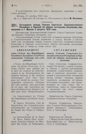 Главная Собрание законов и распоряжений правительства РСФСР и СССР Собрание законов и распоряжений Рабоче-Крестьянского Правительства ... Собрание законов и распоряжений Рабоче-крестьянского правительства ... Собрание законов и распоряжений Рабоче-Крестьянского Правительства ... Документы Соглашение между Союзом Советских Социалистических Республик и Перс...