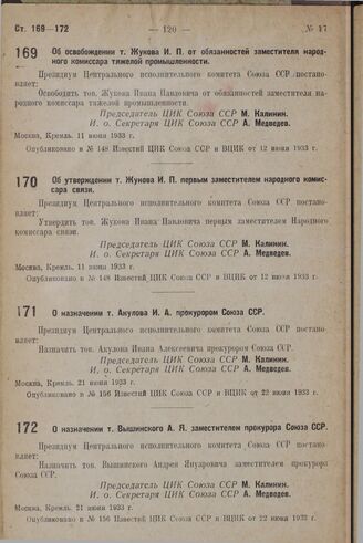 Известия ЦИК Союза ССР и ВЦИК от 12 июня 1933 г., № 148.