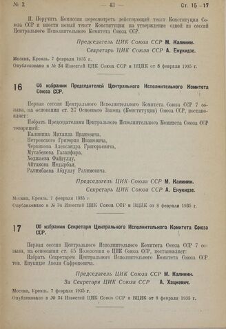 Известия ЦИК Союза ССР и ВЦИК от 8 февраля 1935 г., № 34.