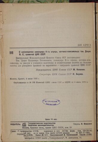 Главная Собрание законов и распоряжений правительства РСФСР и СССР Собрание законов и распоряжений Рабоче-Крестьянского Правительства ... Собрание законов и распоряжений Рабоче-Крестьянского Правительства ... Документы О награждении командира Н-го отряда, летчика-комсомольца тов. Дацко...
