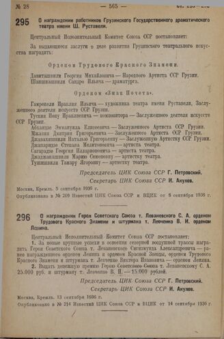 Известия ЦИК Союза ССР и ВЦИК от 14 сентября 1936 г., № 214.