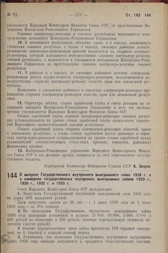 Главная Собрание законов и распоряжений правительства РСФСР и СССР Собрание законов и распоряжений Рабоче-Крестьянского Правительства ... Собрание законов и распоряжений Рабоче-крестьянского правительства ... Собрание постановлений и распоряжений правительства СССР за 1938 г.... Документы Постановление Совета Народных Комиссаров. О выпуске Государственног...