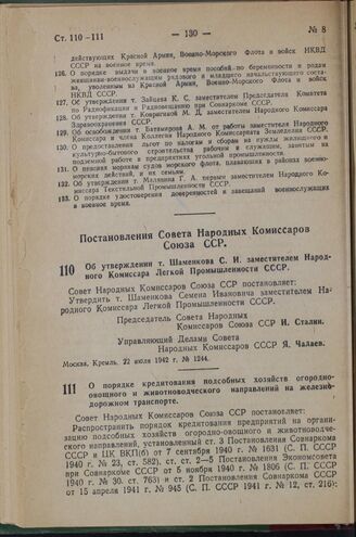 Собрание постановлений и распоряжений правительства СССР за 1942 г. № 1-11. — М., б. г.
