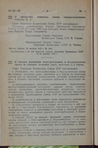 Известия Советов Депутатов Трудящихся СССР от 31 декабря 1943 г., № 309.