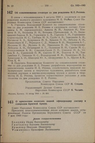 Известия Советов Депутатов Трудящихся СССР от 16 июля 1944 г., № 168.