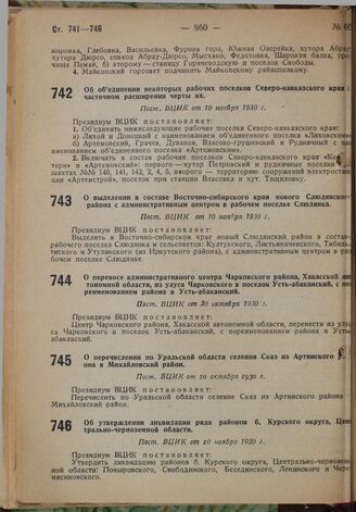 О выделении в составе Восточно-сибирского края нового Слюдянского района с административным центром в рабочем поселке Слюдянка. Пост. ВЦИК от 10 ноября 1930 г.