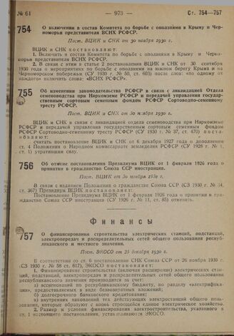 Об отмене постановления Президиума ВЦИК от 1 февраля 1926 года о принятии в гражданство Союза ССР иностранцев. Пост. ВЦИК от З0 ноября 1930 г.