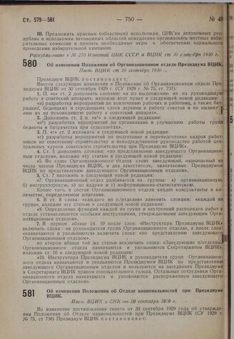 Об изменении Положения об Организационном отделе Президиума ВЦИК. Пост. ВЦИК от 20 сентября 1930 г.