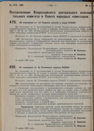 Постановление Всероссийского центрального исполнительного комитета и Совета народных комиссаров. Об изменении ст. 147 Кодекса законов о труде РСФСР. 10 июня 1929 г.