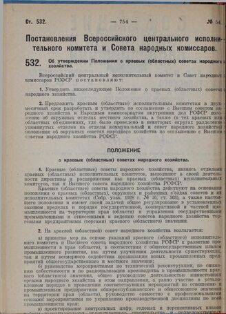 Постановление Всероссийского центрального исполнительного комитета и Совета народных Комиссаров. Об утверждении Положения о краевых (областных) советах народного хозяйства. 1 июля 1929 г.